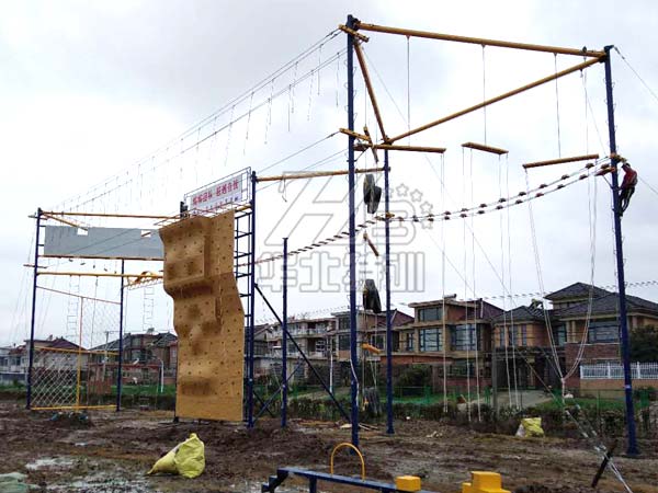 規(guī)格:占地17米×17米,由15個(gè)1米×1米×4米高的站臺(tái)組成。平臺(tái)高2米。起點(diǎn)和終點(diǎn)設(shè)有樓梯。   包含項(xiàng)目:獨(dú)木橋、勇往直前、圓木橋、圓木秋千、等…